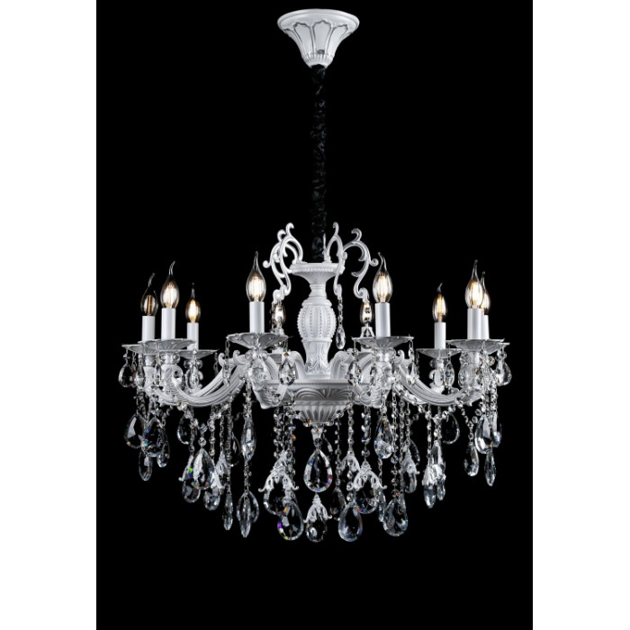 Стиль:Люстры свечиВысота, см:85-115Диаметр, см:80Количество ламп:10MAX мощность лампы, Вт:40Напряжение, В:220Патрон:E14Цвет:белый,сереброМатериал:металл,хрустальПроизводитель:Splendid Ray(Китай)Дополнительная информация:Тип крепления:на крючок