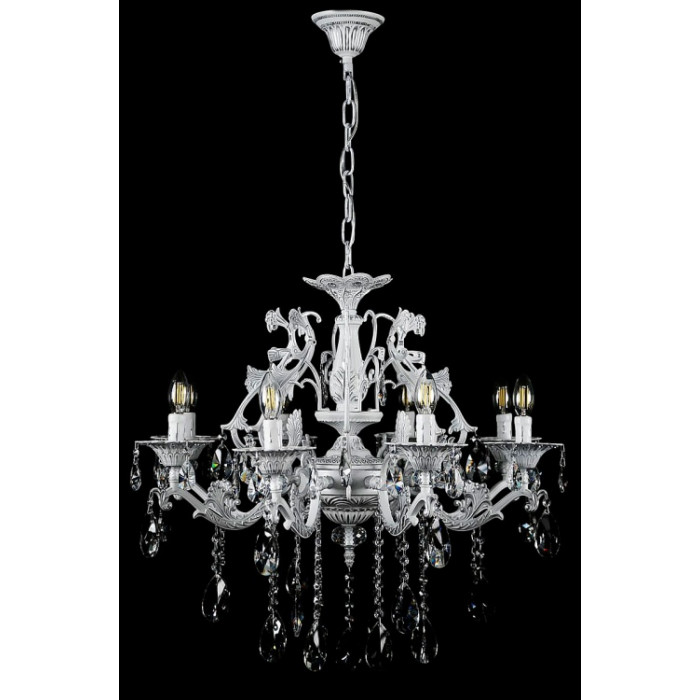 Стиль:Люстры свечиВысота, см:80-110Диаметр, см:75Количество ламп:8MAX мощность лампы, Вт:40Напряжение, В:220Патрон:Е14Цвет:белый, серебро.Материал:металл, хрустальПроизводитель:Splendid Ray(Китай)Дополнительная информация:Тип крепления:на крючок