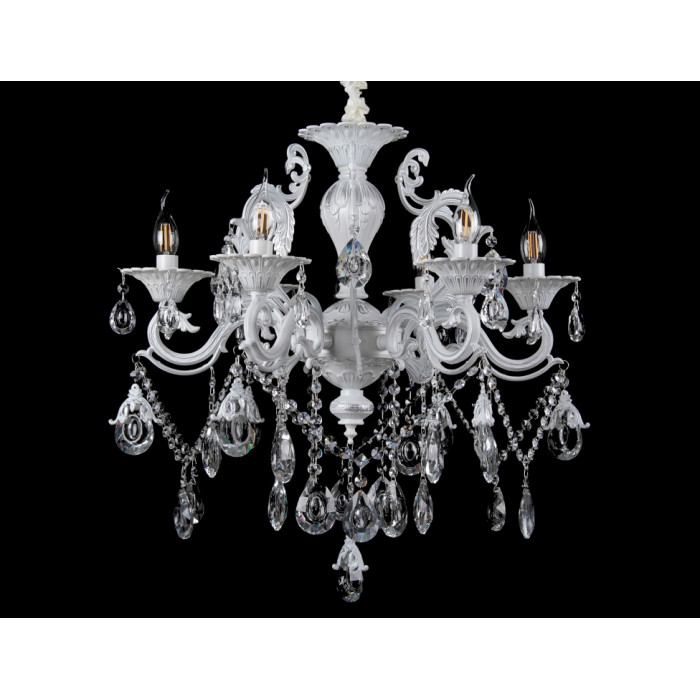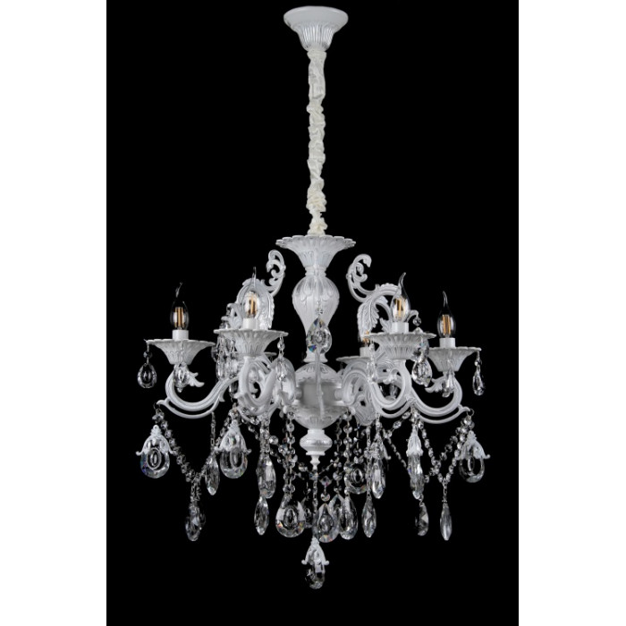 Стиль:Люстры свечиВысота, см:75-105Диаметр, см:63Количество ламп:6MAX мощность лампы, Вт:40Напряжение, В:220Патрон:Е14Цвет:золото,белыйМатериал:металл,хрустальПроизводитель:Splendid Ray (Китай)Дополнительная информация:Тип крепления:на крючок