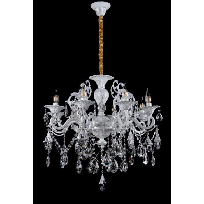 Стиль:Люстры свечиВысота, см:75-105Диаметр, см:70Количество ламп:8MAX мощность лампы, Вт:40Напряжение, В:220Патрон:Е14Цвет:золото,белыйМатериал:металл,хрустальПроизводитель:Splendid Ray (Китай)Дополнительная информация:Тип крепления:на крючок