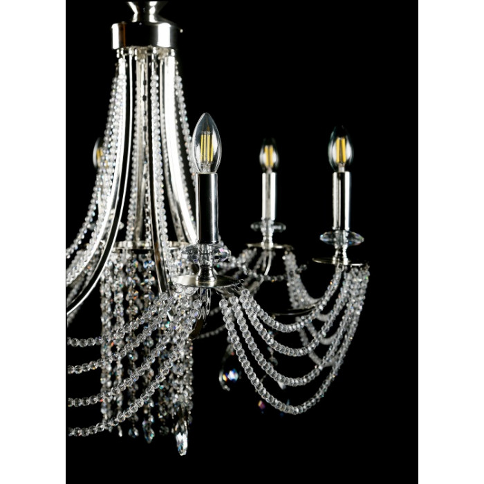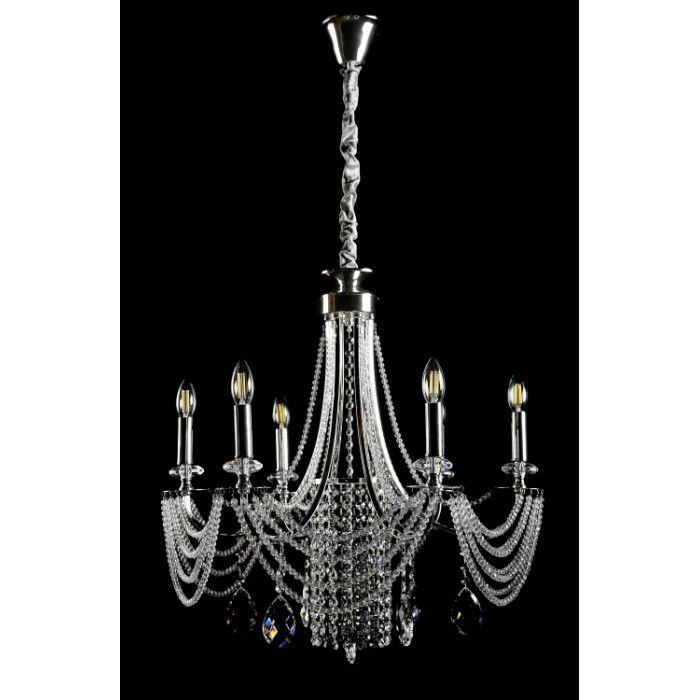 Стиль:Люстры свечиВысота, см:68-110Диаметр, см:65Количество ламп:6MAX мощность лампы, Вт:40Напряжение, В:220Патрон:Е14Цвет:хром, белый.Материал:металл, хрустальПроизводитель:Splendid Ray(Китай)Дополнительная информация:Тип крепления:на крючок