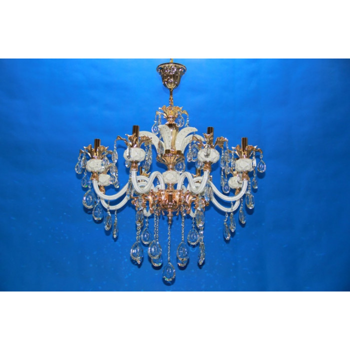 Стиль:Люстры свечиВысота, см:119Диаметр, см:77Количество ламп:8MAX мощность лампы, Вт:40Напряжение, В:220Патрон:Е14Цвет:золото,белыйМатериал:металл,стекло,хрустальПроизводитель:Splendid Ray (Китай)Дополнительная информация:Тип крепления:на крючок