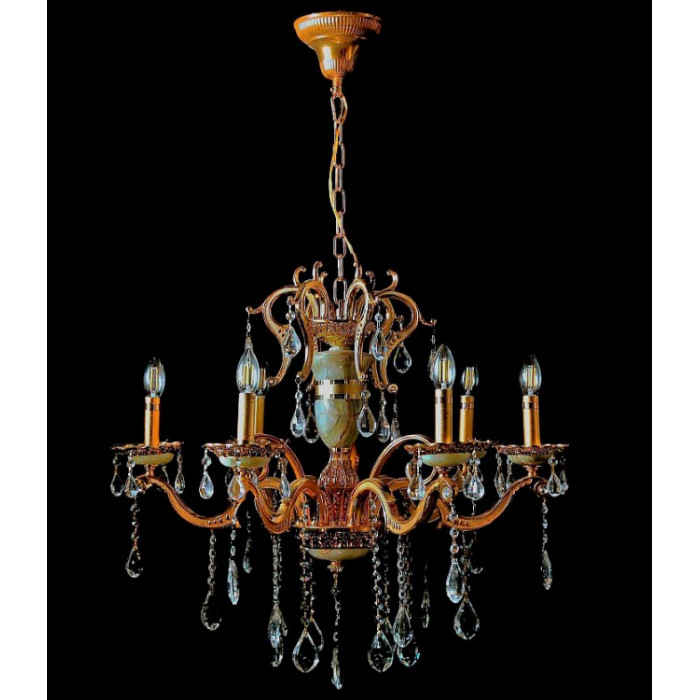 Стиль:Люстры свечиВысота, см:130Диаметр, см:68Количество ламп:6MAX мощность лампы, Вт:40Напряжение, В:220Патрон:Е14Цвет:золото,зеленый,белыйМатериал:металл,стекло,хрусталь,мраморПроизводитель:Splendid Ray(Китай)Дополнительная информация:Тип крепления:на крючок