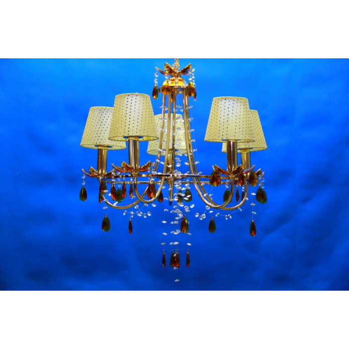 Стиль:Люстры свечиВысота, см:85-110Диаметр, см:64Количество ламп:5MAX мощность лампы, Вт:40Напряжение, В:220Патрон:Е14Цвет:золото,коричневый,белыйМатериал:металл,стекло,тканьПроизводитель:Splendid Ray(Китай)Дополнительная информация:Тип крепления:на крючок