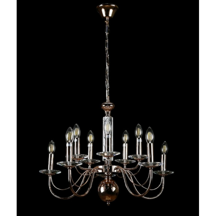 Стиль:Люстры свечиВысота, см:65-105Диаметр, см:63Количество ламп:10MAX мощность лампы, Вт:40Напряжение, В:220Патрон:Е14Цвет:золото, белый.Материал:металл, хрустальПроизводитель:Splendid Ray(Китай)Дополнительная информация:Тип крепления:на крючок