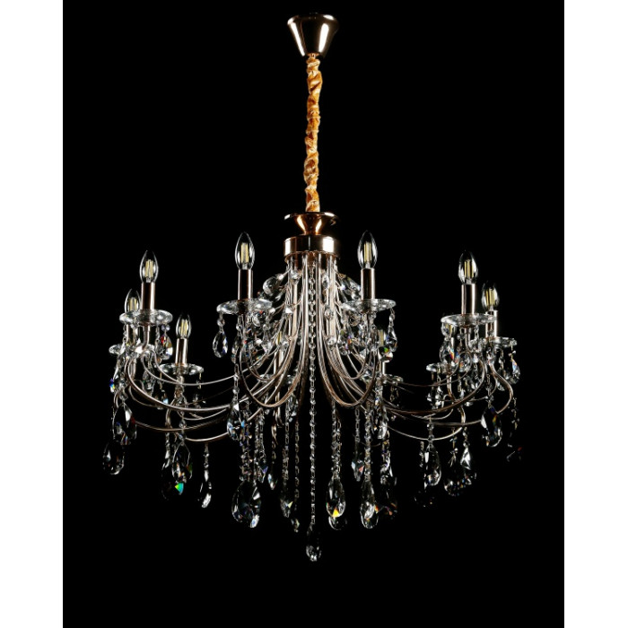 Стиль:Люстры свечиВысота, см:75-115Диаметр, см:80Количество ламп:10MAX мощность лампы, Вт:40Напряжение, В:220Патрон:Е14Цвет:золото, белый.Материал:металл, хрустальПроизводитель:Splendid Ray(Китай)Дополнительная информация:Тип крепления:на крючок