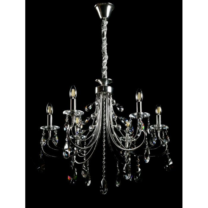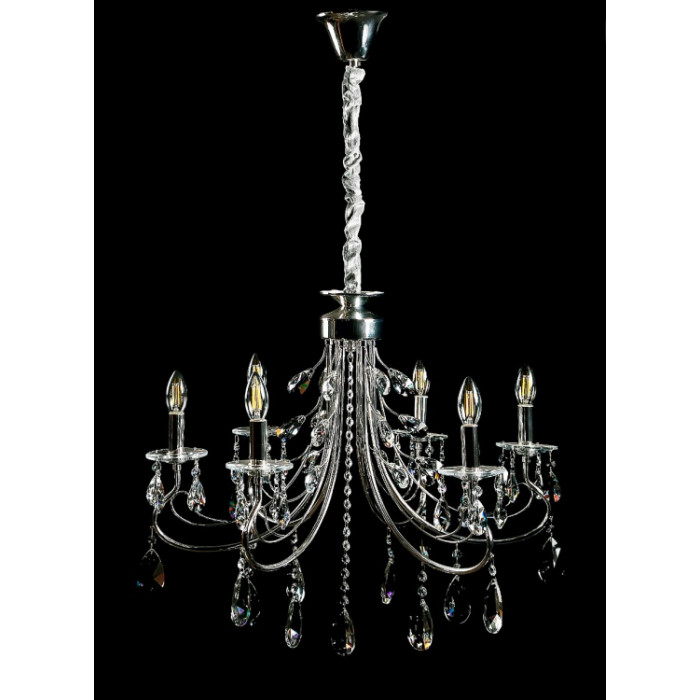 Стиль:Люстры свечиВысота, см:65-105Диаметр, см:66Количество ламп:6MAX мощность лампы, Вт:40Напряжение, В:220Патрон:Е14Цвет:хром, белый.Материал:металл, хрустальПроизводитель:Splendid Ray(Китай)Дополнительная информация:Тип крепления:на крючок
