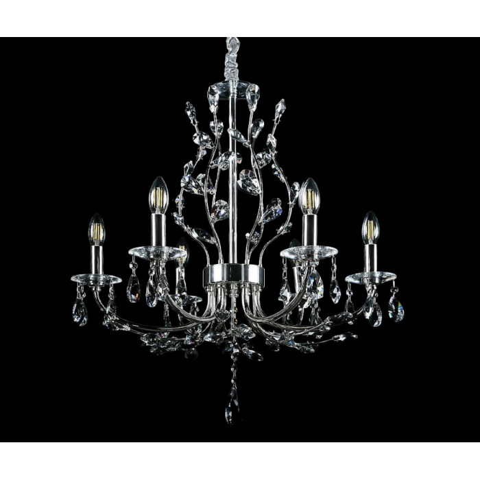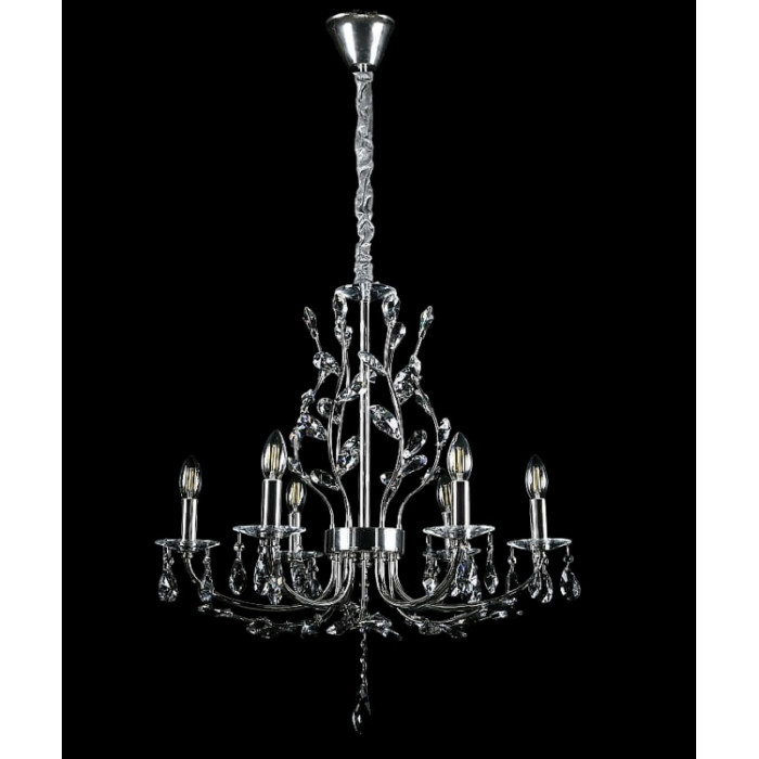 Стиль:Люстры свечиВысота, см:75-115Диаметр, см:63Количество ламп:6MAX мощность лампы, Вт:40Напряжение, В:220Патрон:Е14Цвет:хром, белый.Материал:металл, хрустальПроизводитель:Splendid Ray(Китай)Дополнительная информация:Тип крепления:на крючок