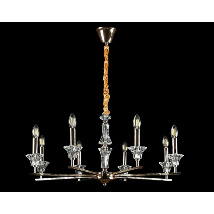 Стиль:Люстры свечиВысота, см:50-85Диаметр, см:80Количество ламп:8MAX мощность лампы, Вт:40Напряжение, В:220Патрон:Е14Цвет:золото, белый.Материал:металл, хрустальПроизводитель:Splendid Ray(Китай)Дополнительная информация:Тип крепления:на крючок
