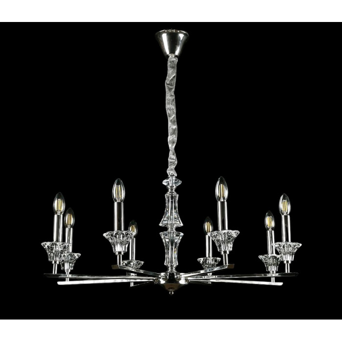 Стиль:Люстры свечиВысота, см:50-85Диаметр, см:80Количество ламп:8MAX мощность лампы, Вт:40Напряжение, В:220Патрон:Е14Цвет:хром, белый.Материал:металл, хрустальПроизводитель:Splendid Ray(Китай)Дополнительная информация:Тип крепления:на крючок
