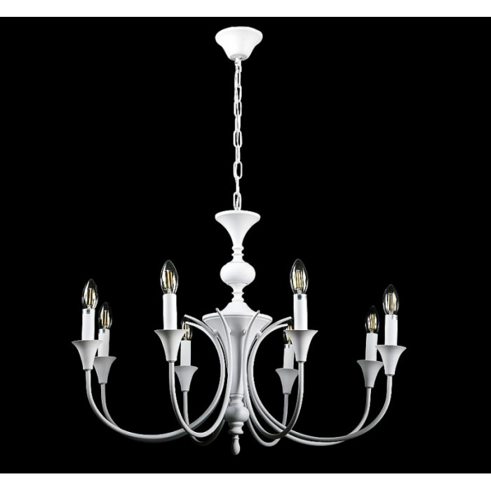Стиль:Люстры свечиВысота, см:65-100Диаметр, см:75Количество ламп:8MAX мощность лампы, Вт:40Напряжение, В:220Патрон:Е14Цвет:белый.Материал:металлПроизводитель:Splendid Ray(Китай)Дополнительная информация:Тип крепления:на крючок