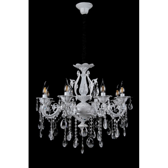 Стиль:Люстры свечиВысота, см:75-110Диаметр, см:70Количество ламп:8MAX мощность лампы, Вт:40Напряжение, В:220Патрон:E14Цвет:белый,сереброМатериал:металл,хрустальПроизводитель:Splendid Ray(Китай)Дополнительная информация:Тип крепления:на крючок