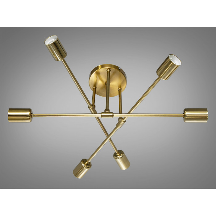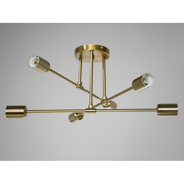 Люстра в стилі Loft на 6 ламп Е27, є яскравим представником індустріального дизайну, який ідеально вписується в сучасні інтер'єри, де цінується простота, функціональність та відкритість простору. Золотистий блиск металевих елементів додає люстрі виразності та шарму, що робить її не тільки джерелом світла, але й елементом декору.