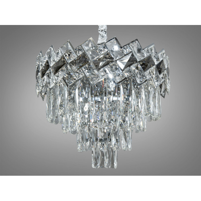 Конструкція дизайнерської люстри є справжнім епіцентром люстри, з якого розходиться м'яке, але яскраве світло, створюючи в просторі відчуття тепла та затишку. Велика кількість точно відшліфованих кришталів вловлює кожен промінь світла, розсіюючи його у найвіддаленіші куточки кімнати, створюючи ефект зоряного неба просто у вас вдома.