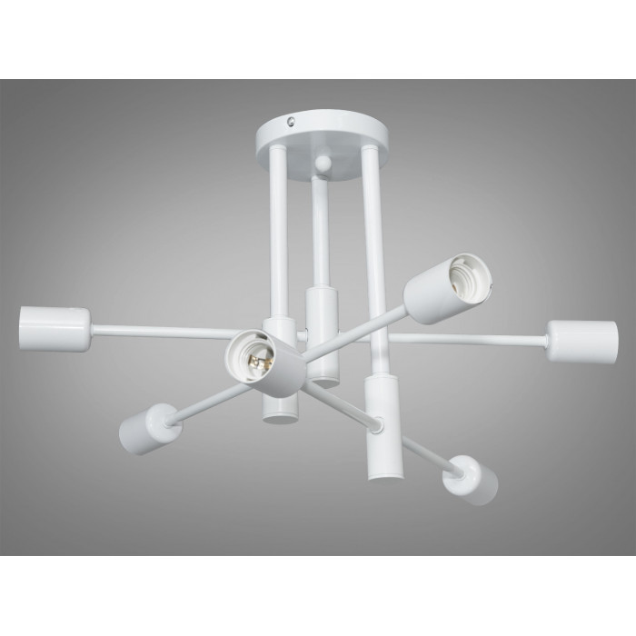 Мінімалістична стельова люстра у стилі лофт від ТМ «Діаша» – це втілення сучасного дизайну та функціональності. Її проста, але стильна біла конструкція на шість ламп цоколь Е27 робить її універсальним рішенням для різних просторів і стилів. Люстра під натяжну стелю буде виглядати лаконічно і не перевантажуватиме інтер'єр.