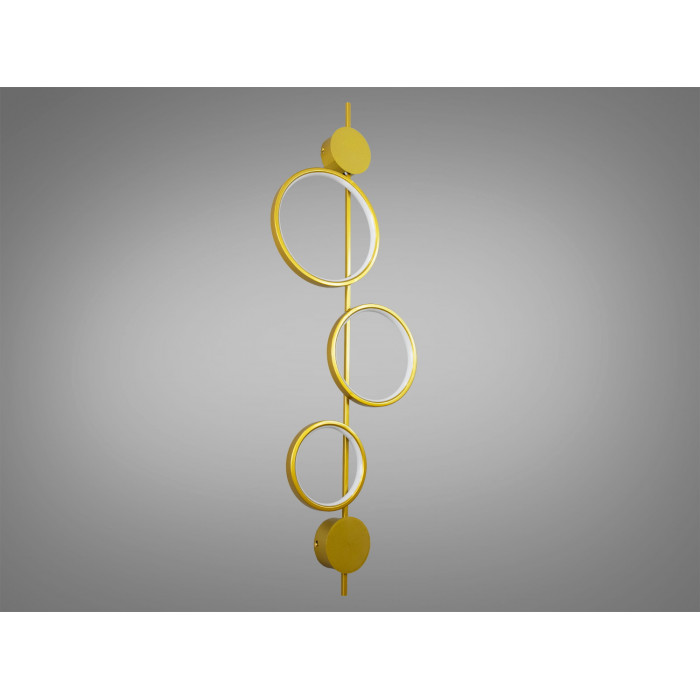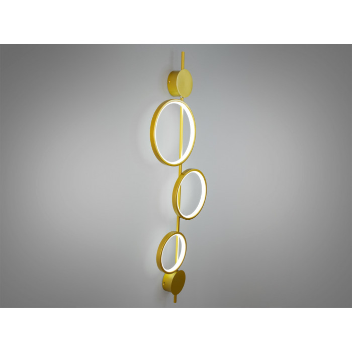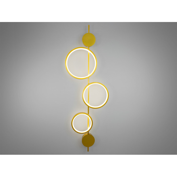Цей настінний світильник бра вражає своїм стильним і водночас мінімалістичним дизайном, який вдало поєднує геометричні форми та сучасні матеріали. Конструкція світильника виконана у вигляді витонченої композиції із золотих кругів різного діаметра, що створюють гармонію пропорцій та симетрії. Відтінки золотистого покриття додають світильнику розкоші, тоді як світлодіодні елементи всередині кругів забезпечують рівномірне і м’яке освітлення. Цей LED світильник випромінює тепле світло, яке наповнює простір затишком і стильним шармом.