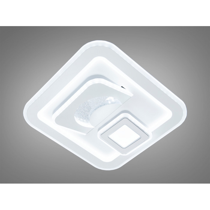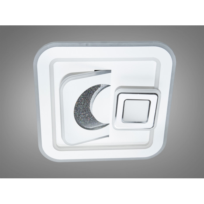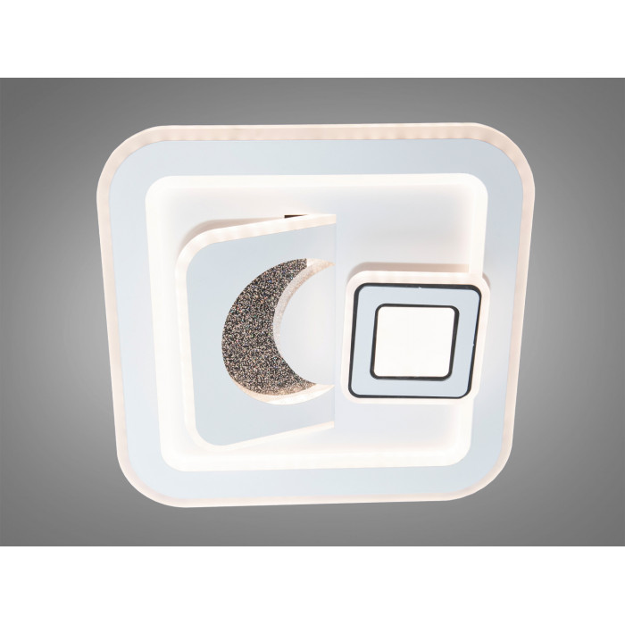 Дизайн світильника являє собою симбіоз сучасних технологій та класичної елегантності. Він має кілька рівнів освітлення, що включає центральну акрилову частину, оточену двома кільцями з високоякісних світлодіодів. Центральне кільце, увінчане прозорими кришталами, створює динамічну гру світла і тіней, що надає простору розкоші та вишуканості. Зовнішні кільця випромінюють м'яке, рівномірне світло, здатне забезпечити достатню освітленість великого простору.