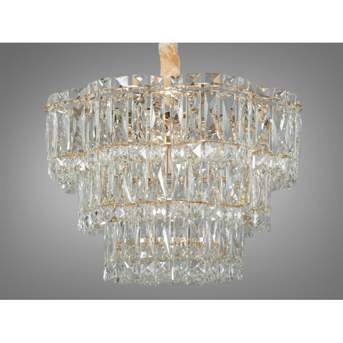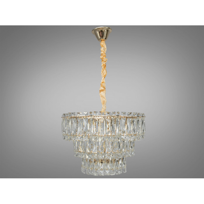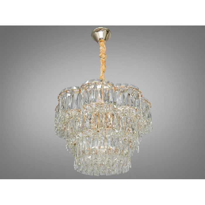 Кожен кришталь – це витвір мистецтва, із точністю відшліфований до досконалості, щоб максимально розсіяти світло, яке випромінюється з ламп, створюючи невимовну гру світла та тіні, яка оживляє простір навколо. Золота підвіска, з якої каскадом опускаються кришталі, додає вишуканості та елегантності люстрі, підкреслюючи її розкішний характер.