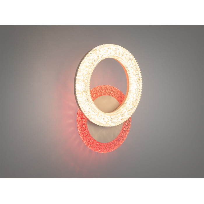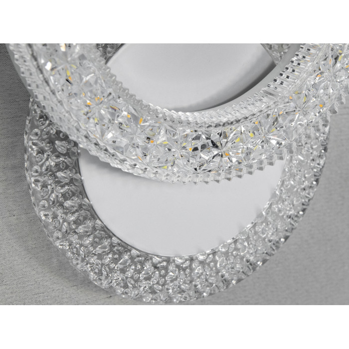Дизайн світильника з акриловим розсіювачем, який елегантно вигинається та обрамляє світлодіодні елементи, додає пристрою оригінальності та сучасного вигляду. Нові плафони виготовлені з прозорого акрилу з декоративними бульбашками. Через прозорі акрилові плафони просвічує малюнок шпалер або декоративної штукатурки, при включенні бра відкидає на стіну унікальний ореол з відблисків та тіней. Інтегровані світлодіоди забезпечують ефективне освітлення з мінімальним споживанням енергії та тривалим терміном служби.