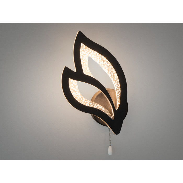 Дизайн світильника з акриловим розсіювачем, який елегантно вигинається та обрамляє світлодіодні елементи, додає пристрою оригінальності та сучасного вигляду. Нові плафони виготовлені з прозорого акрилу з декоративними бульбашками. Через прозорі акрилові плафони просвічує малюнок шпалер або декоративної штукатурки, при включенні бра відкидає на стіну унікальний ореол з відблисків та тіней. Інтегровані світлодіоди забезпечують ефективне освітлення з мінімальним споживанням енергії та тривалим терміном служби.