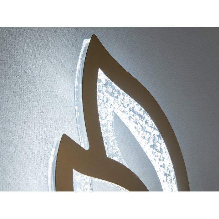 Дизайн світильника з акриловим розсіювачем, який елегантно вигинається та обрамляє світлодіодні елементи, додає пристрою оригінальності та сучасного вигляду. Нові плафони виготовлені з прозорого акрилу з декоративними бульбашками. Через прозорі акрилові плафони просвічує малюнок шпалер або декоративної штукатурки, при включенні бра відкидає на стіну унікальний ореол з відблисків та тіней. Інтегровані світлодіоди забезпечують ефективне освітлення з мінімальним споживанням енергії та тривалим терміном служби.
