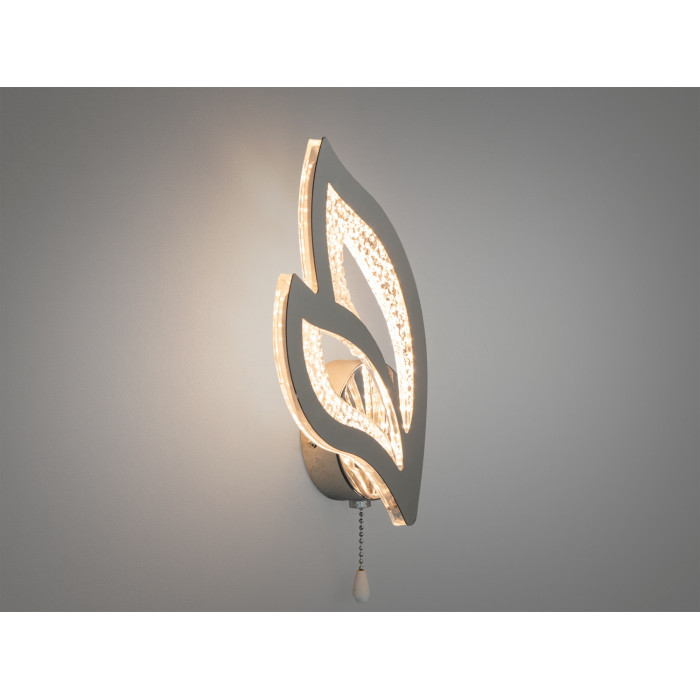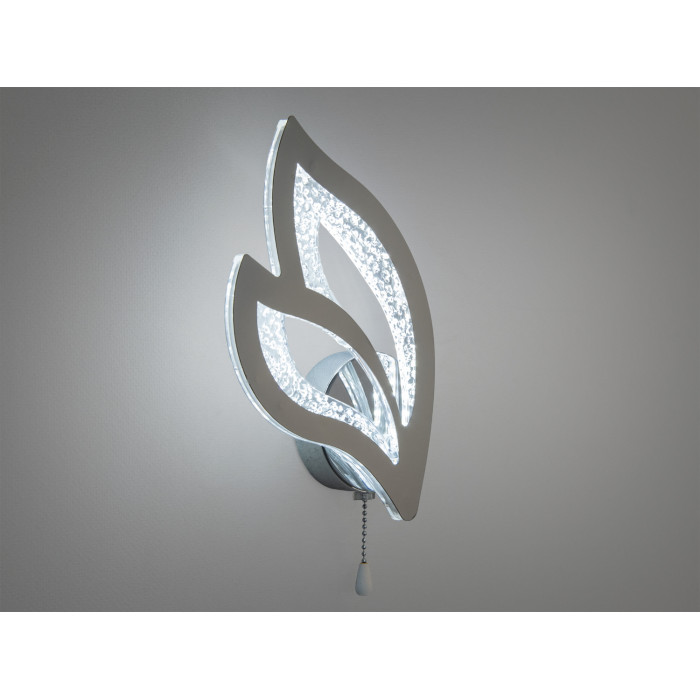 Дизайн світильника з акриловим розсіювачем, який елегантно вигинається та обрамляє світлодіодні елементи, додає пристрою оригінальності та сучасного вигляду. Нові плафони виготовлені з прозорого акрилу з декоративними бульбашками. Через прозорі акрилові плафони просвічує малюнок шпалер або декоративної штукатурки, при включенні бра відкидає на стіну унікальний ореол з відблисків та тіней. Інтегровані світлодіоди забезпечують ефективне освітлення з мінімальним споживанням енергії та тривалим терміном служби.