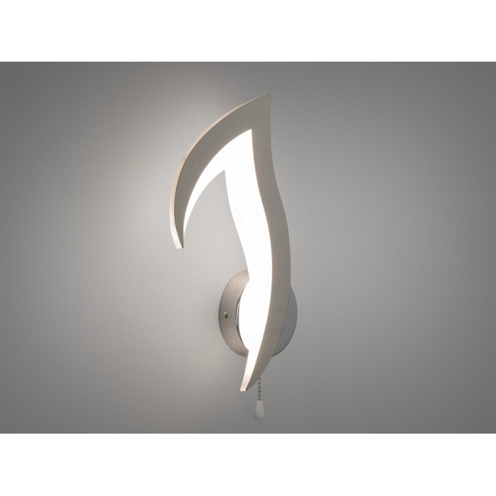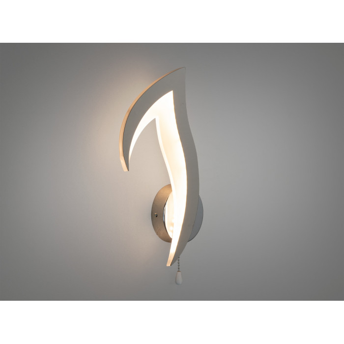 Дизайн світильника з акриловим розсіювачем, який елегантно вигинається та обрамляє світлодіодні елементи, додає пристрою оригінальності та сучасного вигляду. Нові плафони виготовлені з прозорого акрилу з декоративними бульбашками. Через прозорі акрилові плафони просвічує малюнок шпалер або декоративної штукатурки, при включенні бра відкидає на стіну унікальний ореол з відблисків та тіней. Інтегровані світлодіоди забезпечують ефективне освітлення з мінімальним споживанням енергії та тривалим терміном служби.