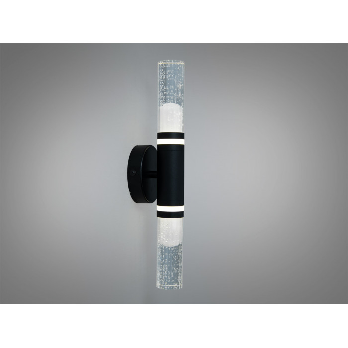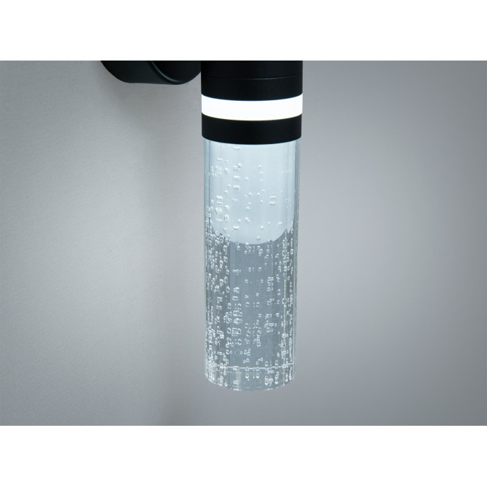 Це настінне бра створене для акуратного акцентного освітлення і підкреслення фактур у сучасному інтерєрі. Поєднання чорного металевого корпусу та прозорого циліндричного плафона з «бульбашковим» ефектом формує м’яке сяйво і привабливі відблиски на стіні. Вбудований LED модуль 6 Вт передбачає помірне енергоспоживання, а вертикальна композиція додає простору графічності без перевантаження деталей.