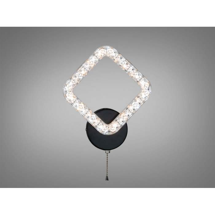 Переваги для інтер’єру: чітка геометрія форми (ромб/квадрат), можливість варіювати температуру світла без пульта, стале розсіювання завдяки акрилу. Модель у чорному кольорі може контрастувати зі світлими стінами або підтримувати темні акцентні площини. Доступний також білий варіант — це допомагає підібрати пару бра у різні кімнати або зони.