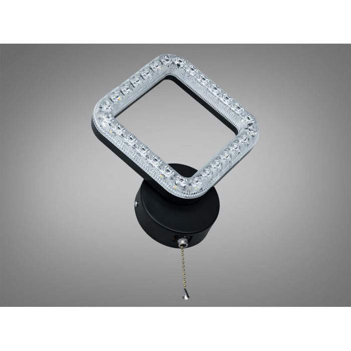 Настінне приліжкове LED бра 17 Вт у чорному кольорі створює спрямоване й водночас м’яко розсіяне світло для комфортного читання, відпочинку та акцентного підсвічування. Геометричний плафон з прозорими акриловими вставками виглядає виразно у сучасних інтер’єрах і допомагає сформувати приємне світлове коло без відблисків.