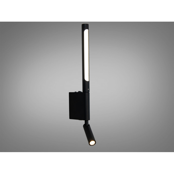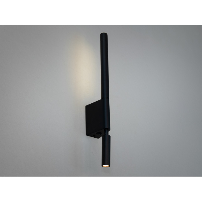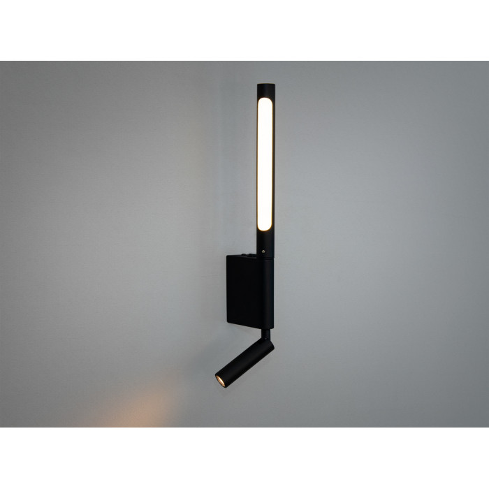 Дане настінне бра вирізняється своєю стриманою елегантністю та функціональністю, що робить його ідеальним рішенням для сучасного інтер'єру. Корпус led світильника виконаний у матовому чорному кольорі, що надає йому стильного мінімалістичного вигляду. Особливістю моделі є комбінація двох джерел світла: вертикальної трубчастої LED трубки та поворотного спрямованого прожектора. Такий дизайн дозволяє поєднувати розсіяне освітлення із акцентним підсвічуванням, створюючи комфортну атмосферу у будь-якому приміщенні.