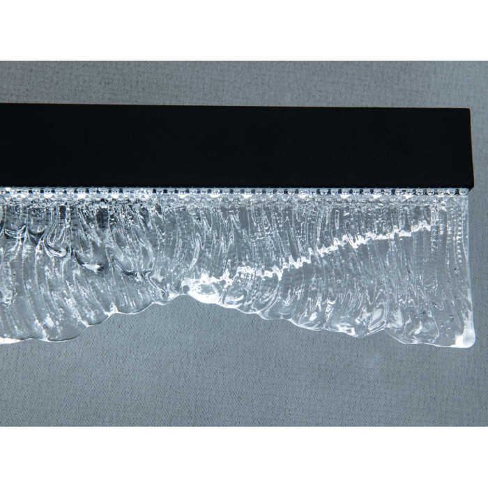 Настінний LED бра-планка, 11 Вт, чорна — лінійний світильник для настінного монтажу з прозорим рельєфним склом «хвилі» та чорним металевим корпусом. Поєднання текстурованого скла і стриманої геометрії створює м’яку гру світла на стіні та предметах інтер’єру. Такий формат зазвичай обирають для зонального й декоративного підсвічування у сучасних просторах, де важливі чисті лінії та акуратні деталі.