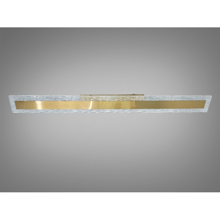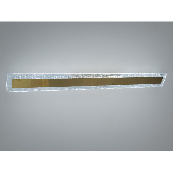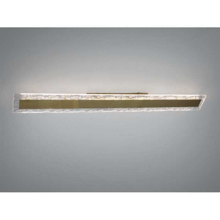 Це настінне LED бра-планка у витриманому стилі мінімалізму створює акуратний, спрямований уздовж стіни світловий потік. Прямокутний металевий корпус із бронзовим покриттям доповнений золотистою вставкою, яка формує виразний акцент і допомагає гармонійно поєднати світильник з теплими відтінками інтер’єру. Конструкція орієнтована на чисту геометрію і лаконічний вигляд — те, що зазвичай цінують у сучасних просторах.