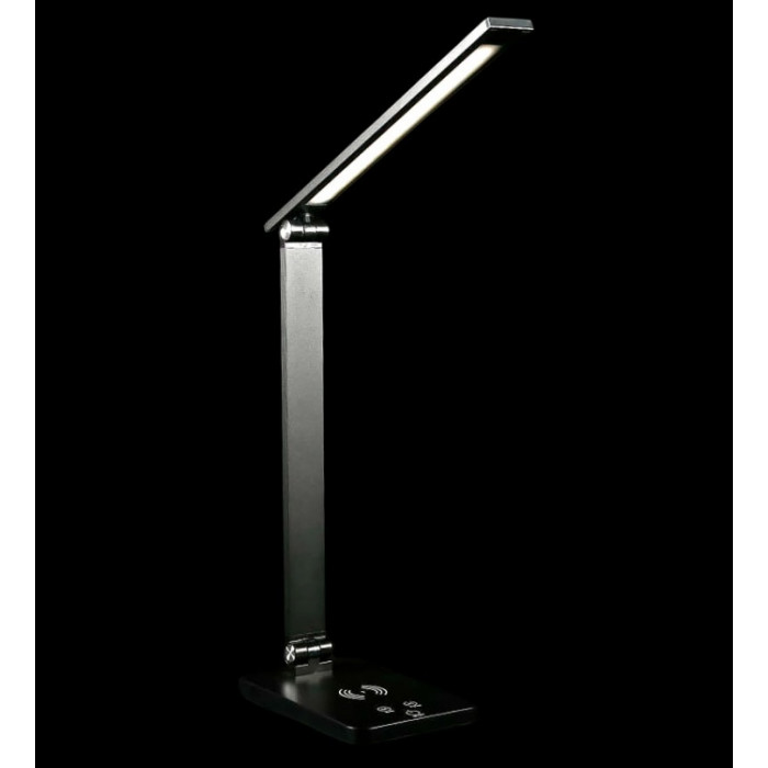 Стиль:Офисные настольные лампыВысота, см:64Ширина, см:11Цвет:чёрныйКоличество ламп:1MAX мощность лампы, Вт:7Напряжение, В:220Патрон:LEDВключение:шнур с выключателемМатериал:металл, пластикПроизводитель:Splendid Ray(Китай)Дополнительная информация:USB-разъём, беспроводная зарядка, выключатель на корпусе, с поворотным плафоном, с диммером, сенсорное управление, регулировка яркости и температуры света (холодный, нейтральный, теплый).