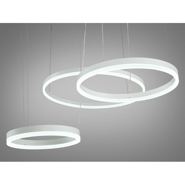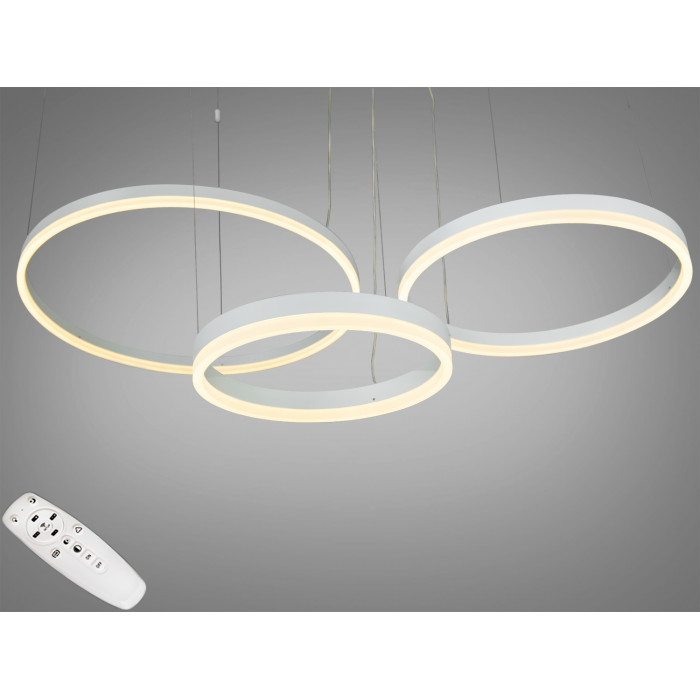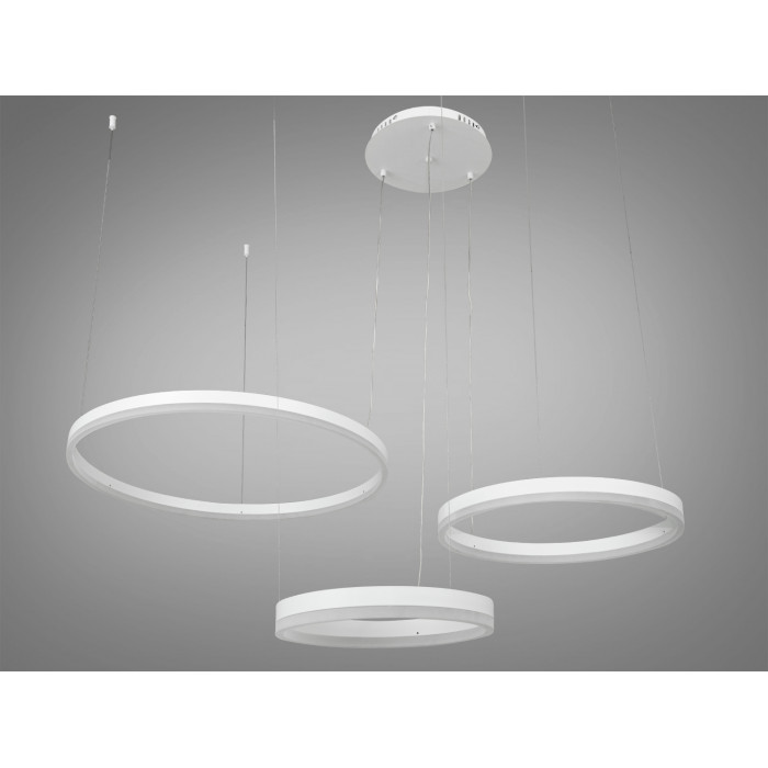 Можливість регулювання висоти підвісу кожного кільця дозволяє налаштувати розміщення світла згідно з потребами простору, що є незамінним для адаптації освітлення до будь-якої кімнати. Регулювання колірної температури 3200,4100,6000К забезпечує можливість вибору відповідного відтінку світла, від теплого до холодного, для створення потрібної атмосфери.