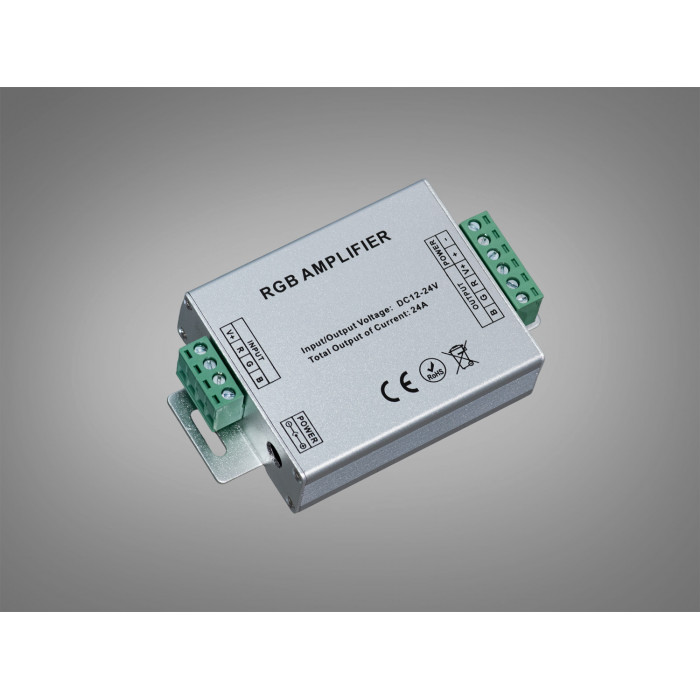 Корпус підсилювача виконаний у мініатюрному форматі, що дозволяє легко інтегрувати його у вже готові проєкти або нові установки. Підтримка робочої напруги 5V, 12V і 24V робить його універсальним інструментом, сумісним з більшістю популярних контролерів на ринку. Пристрій ефективно дублює керуючі сигнали, що надходять від контролера, і передає їх на наступні секції RGB стрічки, зберігаючи чіткість і точність кольорових відтінків.