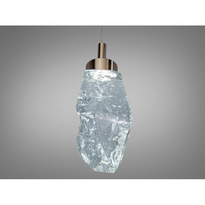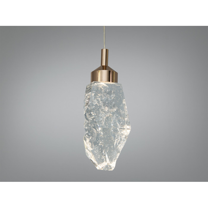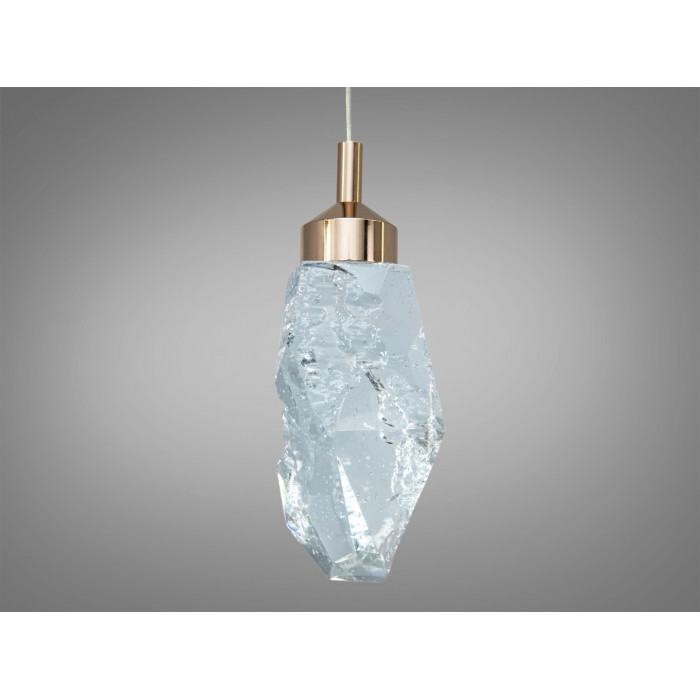 - Прозорий скляний абажур формує чистий потік світла; текстура з бульбашками/кристалічний ефект додає глибину й м’яке розсіювання.