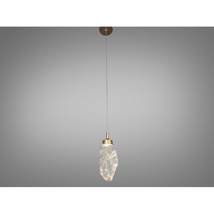 Одинарний LED підвіс Diasha у золотому кольорі створює акуратний акцентний світловий сценарій для сучасних інтер’єрів. Прозорий скляний плафон з ефектом бульбашок або кристалічного мерехтіння поєднується з металевим верхом у відтінку золото, підкреслюючи форму світильника і якість матеріалів. Вбудований LED-модуль 4 Вт забезпечує м’яке спрямоване світло, а зміна колірної температури (CCT) виконується за допомогою звичайного настінного вимикача — без пульта і додаткових налаштувань.