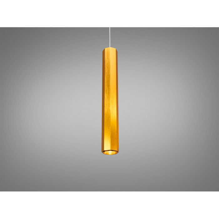 Одинарний LED підвіс Diasha у форматі витонченої циліндричної труби створює спрямований світловий пучок, що допомагає виділити зону над столом, барною стійкою чи тумбою. Потужність 7 Вт зазвичай достатня для локального підсвічування 1–3 м² або для побудови композицій з кількох підвісів над довгими поверхнями. Модель представлена у кольорі золото з латунним відтінком, що органічно поєднується з сучасними інтер’єрами.