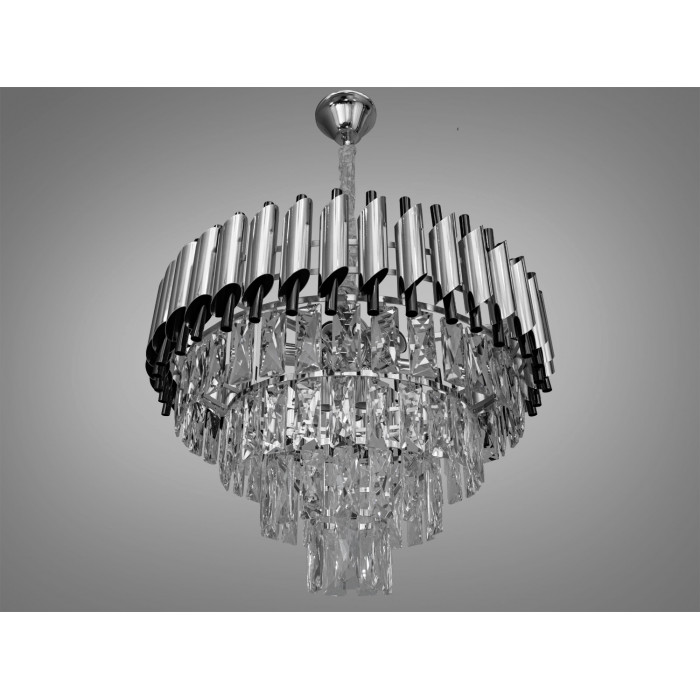 Кришталева люстра Diasha 1013 у контрастному хромі та чорному — 9 x E14