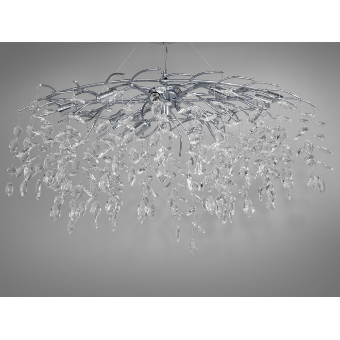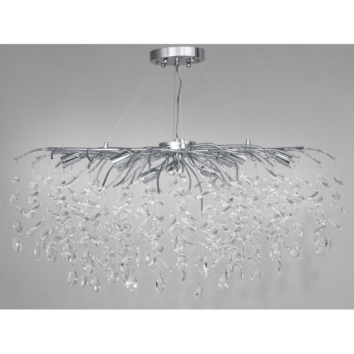 Кришталева люстра-підвіс Глициния у хромі — 10 ламп E14 для витягнутих зон