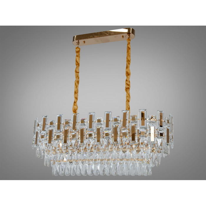 Овальна форма люстри не тільки забезпечує унікальність вигляду, але й функціонально впливає на розподіл світла. Витягнута в горизонтальній площині, вона ідеально підходить для освітлення довгастого столу в їдальні або вітальні, забезпечуючи рівномірне освітлення великих просторів. Саме ця форма дозволяє світлу відбиватися та розсіюватися по всьому приміщенню, створюючи при цьому захоплюючу гру світлових патернів, що виблискують на стінах та стелі.