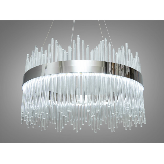 Вершина енергоефективності та краси, кришталева світлодіодна люстра в зал від ТМ «Діаша» — це справжній взірець вишуканості та сучасного дизайну, ідеально підходить для тих, хто шукає люстру в залу. З її великим діаметром, ця кришталева світлодіодна люстра стане яскравим акцентом інтер'єру, розкидаючи світло своїми безліччю висячих кристалічних стрижнів, які мерехтять і блищать, створюючи відчуття зоряного неба просто над головою.