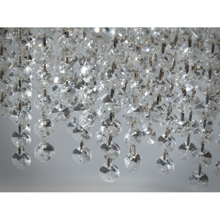 Купити люстру недорого, але високої якості, можливо, і ця модель є чудовим прикладом того. Люстра в коридор або в спальню додасть не тільки функціональності, але й естетичної гармонії. Кожен кришталевий підвіс, наче краплі роси під сонячними променями, відбиває світло, перетворюючи його на танець відблисків і тіней.