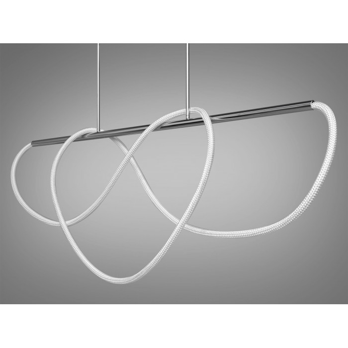 Підвісна Лед люстра в вітальню шланг потужністю 48W, втілює в собі витонченість і технологічну досконалість. Її дизайн змушує замислитися над нескінченністю простору, адже кожен зигзагоподібний звив люстри відображає безмежність уяви дизайнера, що надихає на творчість і мрію.
