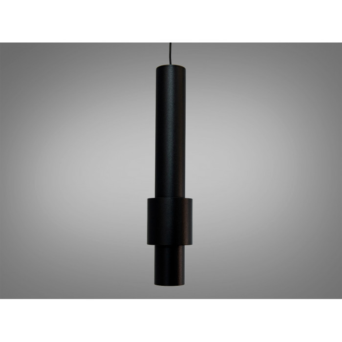 Корпус має лаконічну циліндричну форму з чорного металу. Така геометрія сприяє спрямованому світловому потоку, а матове чорне покриття виглядає стримано та добре поєднується з різними фактурами — деревом, бетоном, каменем. Акуратний підвіс на тонкому шнурі підкреслює вертикаль і дозволяє компонувати кілька однакових світильників у лінію або групою.
