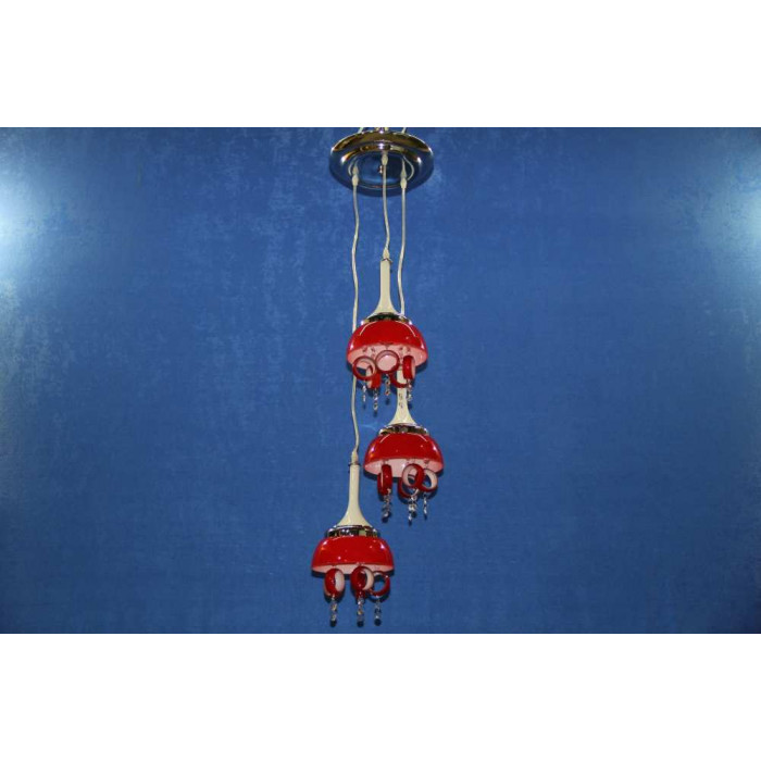 Стиль:Подвесные люстрыВысота, см:41-115Диаметр, см:25Количество ламп:3MAX мощность лампы, Вт:40Напряжение, В:220Патрон:Е27Цвет:Хром, белый, красный.Материал:Металл, стекло, хрусталь.Производитель:Splendid Ray(Китай)Дополнительная информация:Тип крепления:на кронштейн