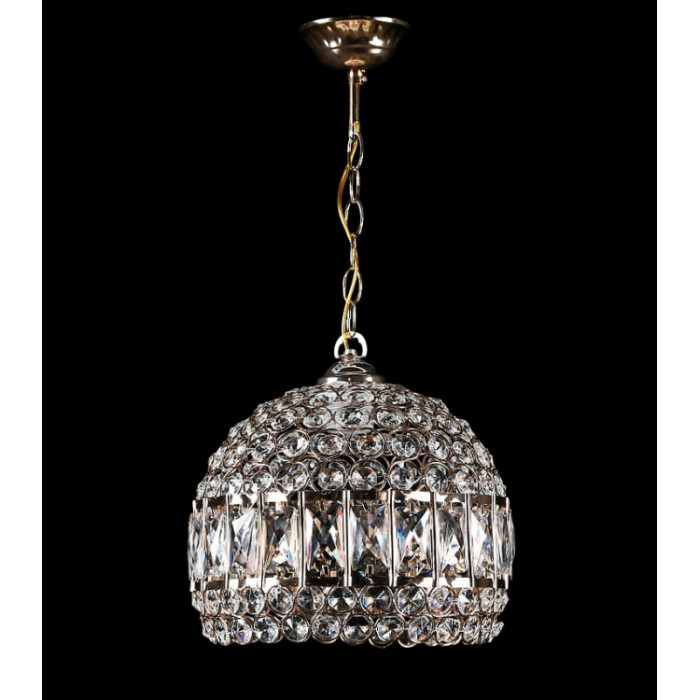 Стиль:Подвесные люстрыВысота, см:45Диаметр, см:25Количество ламп:1MAX мощность лампы, Вт:40Напряжение, В:220Патрон:E27Цвет:золото, белый.Материал:металл, хрустальПроизводитель:Splendid Ray(Китай)Дополнительная информация:Тип крепления:на крючок
