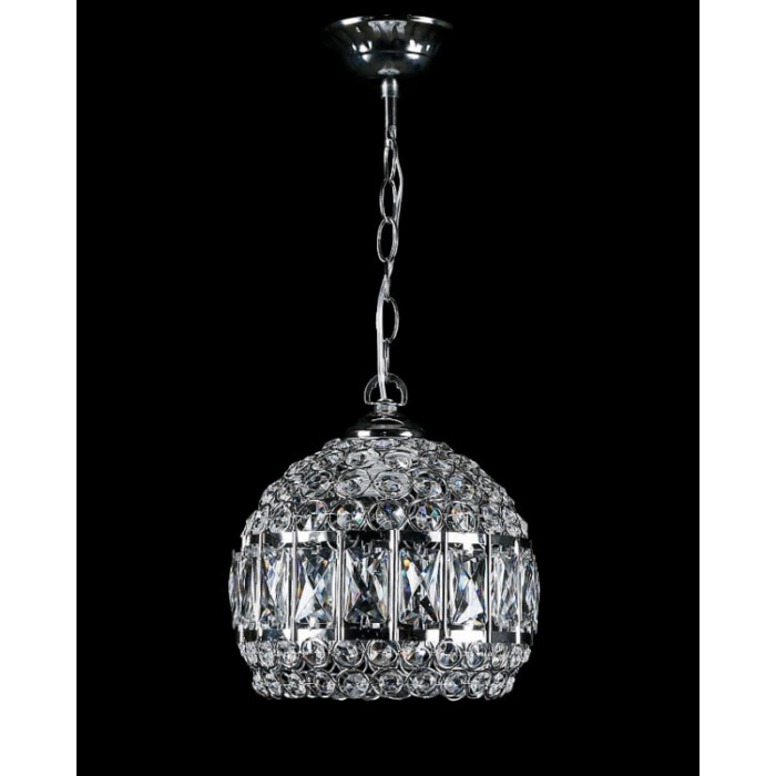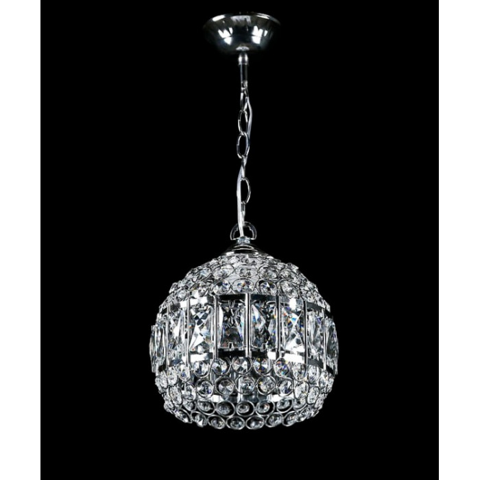 Стиль:Подвесные люстрыВысота, см:45Диаметр, см:20Количество ламп:1MAX мощность лампы, Вт:40Напряжение, В:220Патрон:E27Цвет:хром, белый.Материал:металл, хрустальПроизводитель:Splendid Ray(Китай)Дополнительная информация:Тип крепления:на крючок