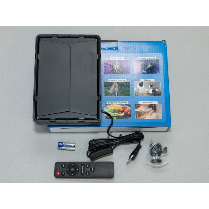 Прожектор комплектується пультом дистанційного управління, який забезпечує зручність налаштування параметрів на відстані. Це ідеальне рішення для тих, хто працює самостійно або має потребу часто змінювати параметри під час зйомки.